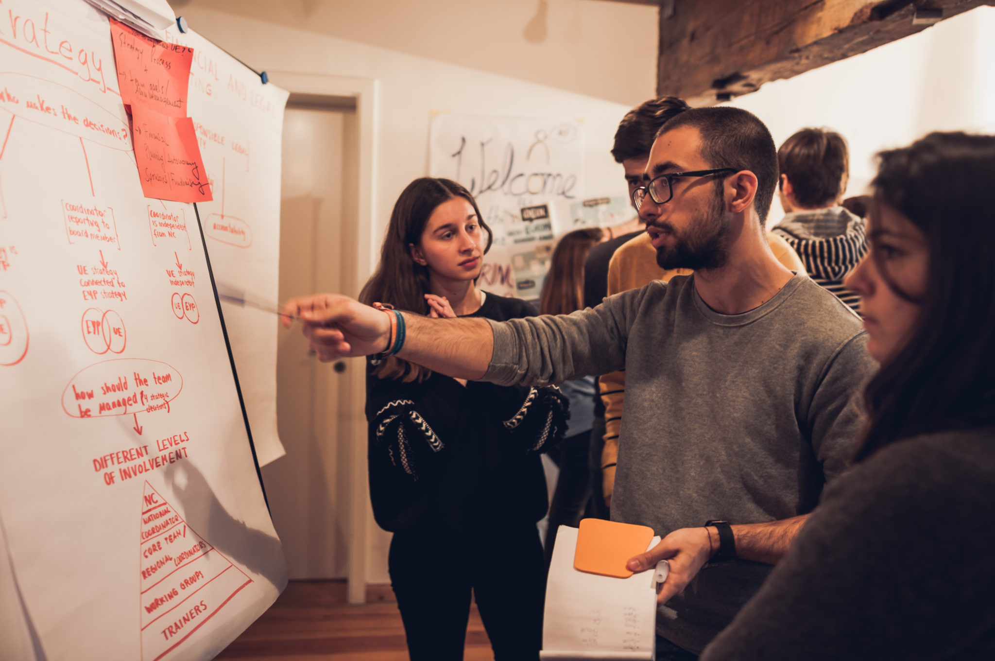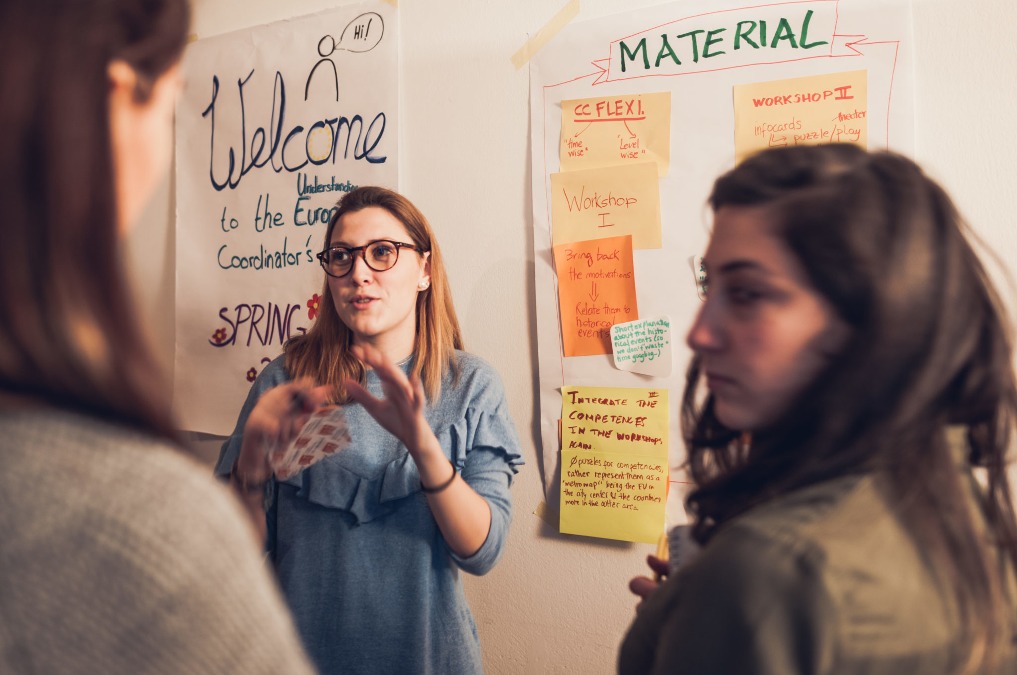 Während des Wochenendes arbeiteten die Koordinator*innen, die für die Organisation von EU-Kompakt-Kursen und der Betreuung von Trainer*innen-Teams verantwortlich sind, in verschiedenen Modulen. Hierbei spielte vor allem der Austausch zwischen den verschiedenen Ländern eine große Rolle. Wie laufen die EU Crash Courses in Spanien? Wie funktioniert das Seminarmaterial in der Ukraine, in Italien, Belgien, Armenien etc.? Was für Herausforderungen gibt es in den Teamstrukturen und welches Feedback geben die Trainer*innen? Die unterschiedlichsten Erfahrungen und Tipps wurden ausgetauscht.